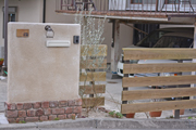 ウッドフェンスと隙間から除く植物で、自然な雰囲気にリフォーム。道行く人にも楽しんでもらえるようになりました。
