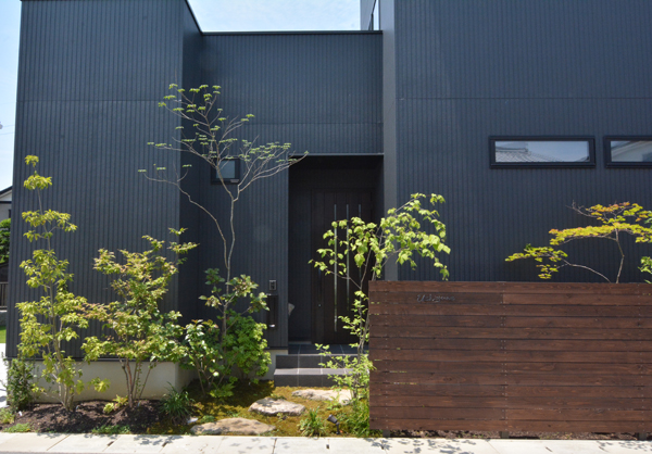 木製フェンス、山石のアプローチ、オリジナル鉄製表札